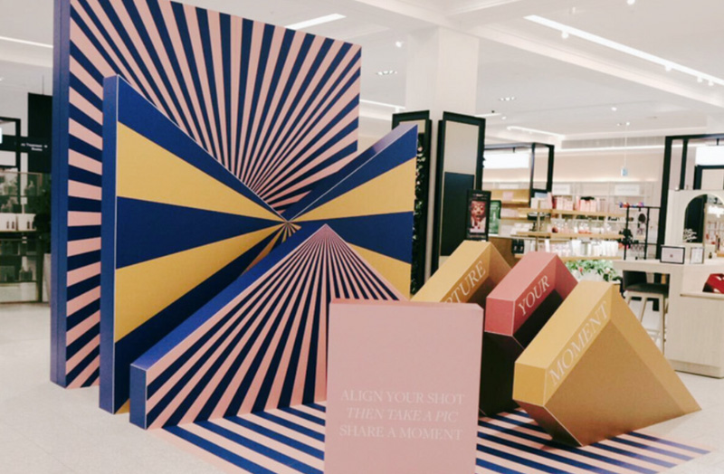 カットや折り加工で多様な形状を実現。大判インクジェット印刷でブランドイメージを什器全面に表現できます。